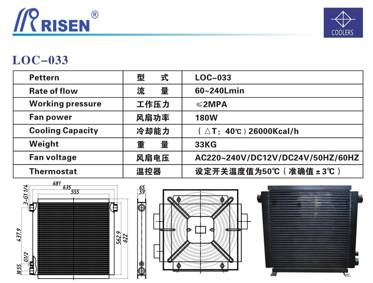 RISEN 日森 板式 風(fēng)冷卻器 兩側(cè)油口 風(fēng)冷 LOC-033 60-240L