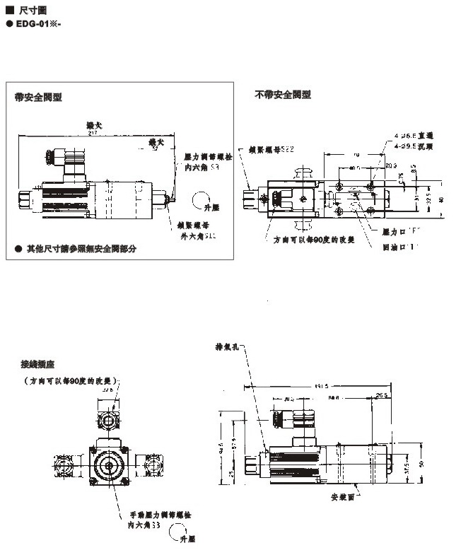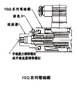 ●為使控制保持穩(wěn)定,要把空氣全部排掉并用油充滿電磁閥的鐵芯。為了排掉空氣要逐漸松開比例閥端部的排氣口。排氣口的位置可以改變,以使空氣可以容易地從閥中排出。要改變排氣口位置時,可旋轉電磁鐵連接器,直至排氣口到達所要求的位置(見右圖)。
