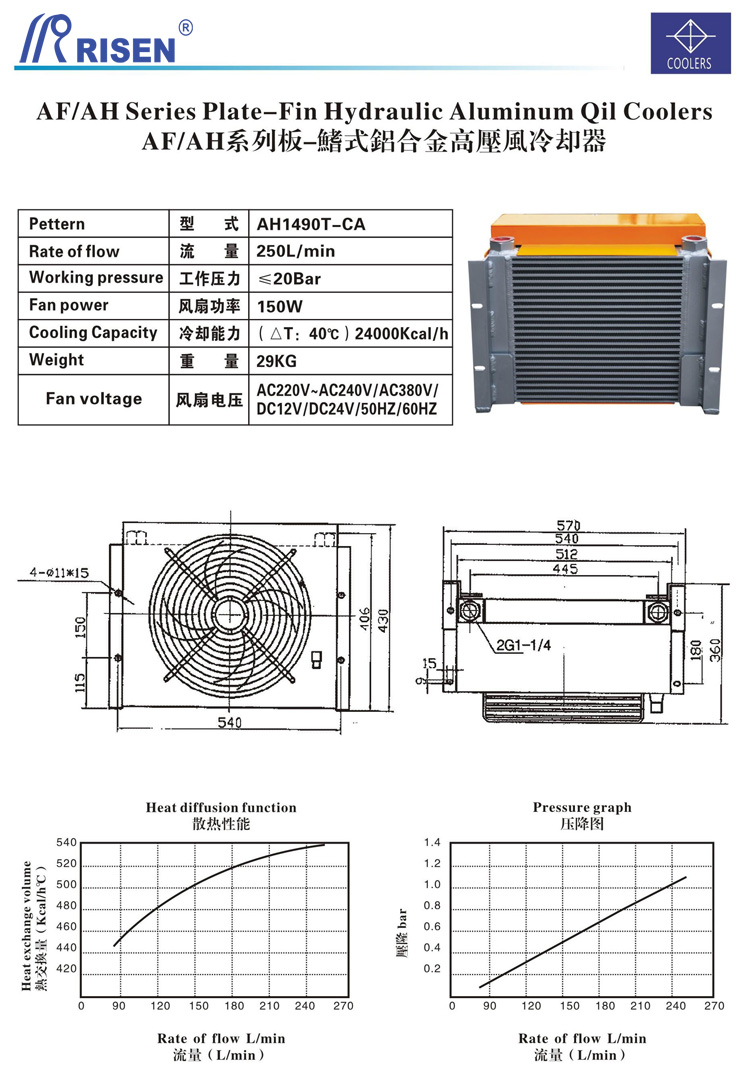>> RISEN 日森 板式 風(fēng)冷卻器 風(fēng)冷 AH1490TT-CA 250L